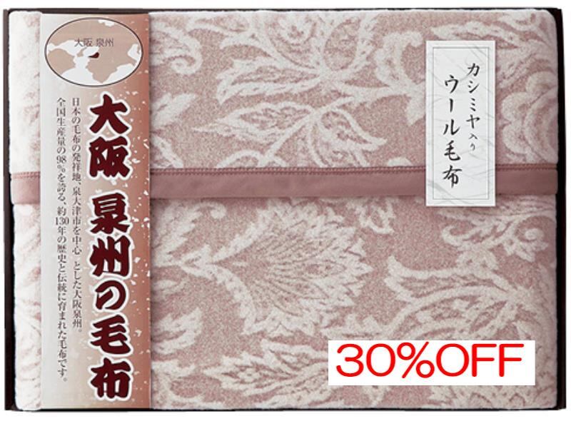 内祝 お返し引出物に 大阪泉州の毛布 ジャカード織 カシミヤ入りウール毛布(毛羽部分) SNW-152