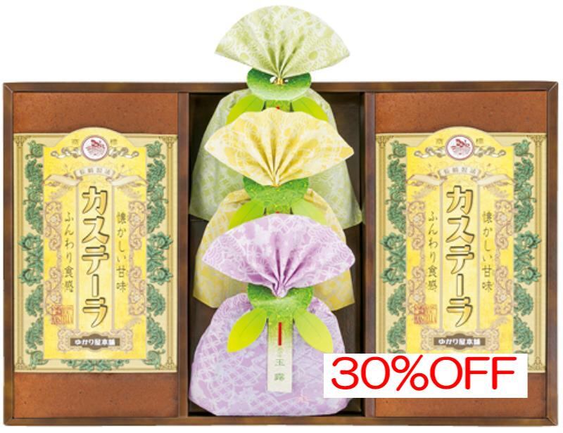 内祝 お返し引出物に 長崎製法カステーラ&緑茶ティーバッグセット KTO-30