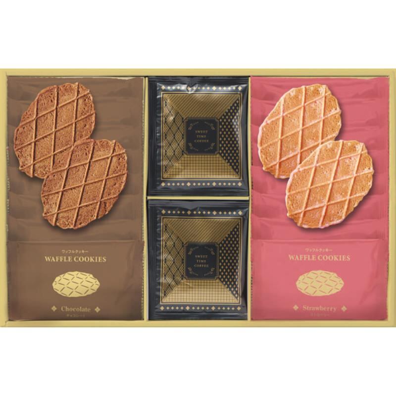 商品内容:●ワッフルクッキー(チョコ・いちご×各8)、ドリップコーヒー8g×4※商品の特性上、衝撃によって菓子が割れることがございます。