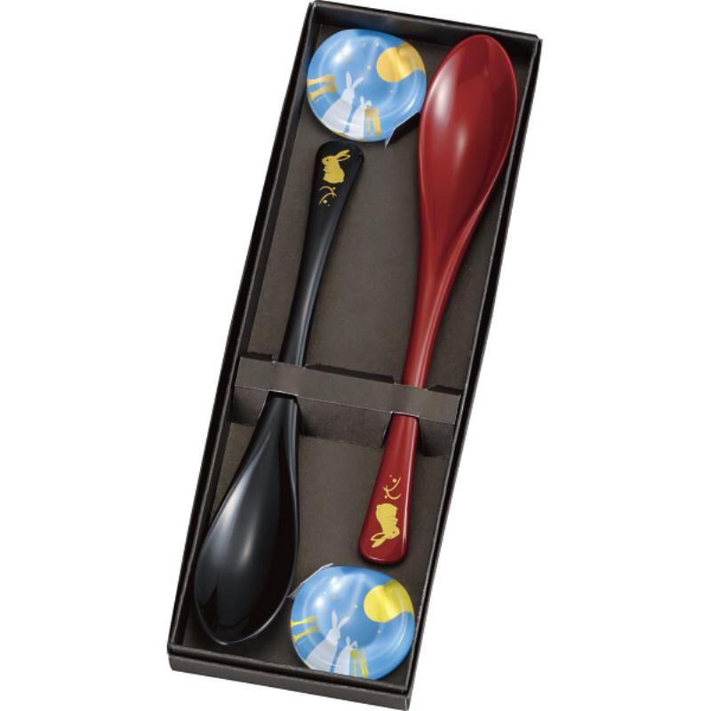ギフト好適品 スプーン2本セット 黒・朱 うさぎ 17100