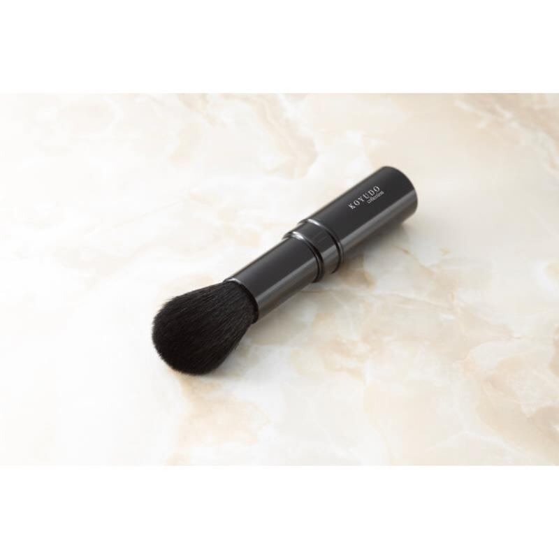 携帯性に優れた収納式チークブラシです。上質な山羊毛(粗光峰)を使用しているので、肌触りが非常に良いです。また、粉含みが良く程よいコシもあります。金具を回しながら毛先が出てくるので、毛先の長さで弾力調整が可能です。